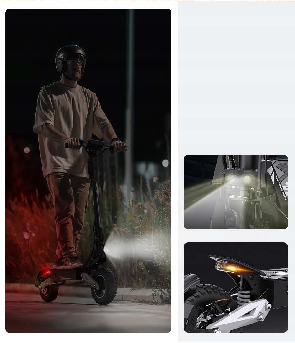 🚨 Обзор со всех сторон - благодаря освещению с углом до 160° спереди и двум задним сигнальным фонарям езда в ночное время становится не только возможной, но и комфортной.