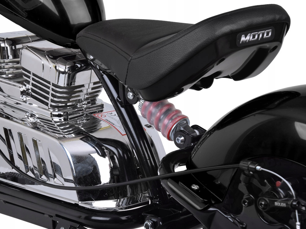 Скорость регулируется в газовой хватке, благодаря тому, что ребенок может плавно и без дрожания, начинающего водить и адаптировать поездку к своим навыкам. Дисковый тормоз гарантирует безопасность во время вождения. Чоппер был оснащен удобными подборами, которые улучшают комфорт вождения. Кроме того, набор включает в себя боковые колеса, которые, безусловно, будут полезны при вождении на двух шине. Со временем, когда ребенок чувствует себя уверенно на мотоцикле, вы можете открутить их. Затем нижний колонтитул придет на помощь, благодаря тому, на что вы можете безопасно отложить мотор для остановки.