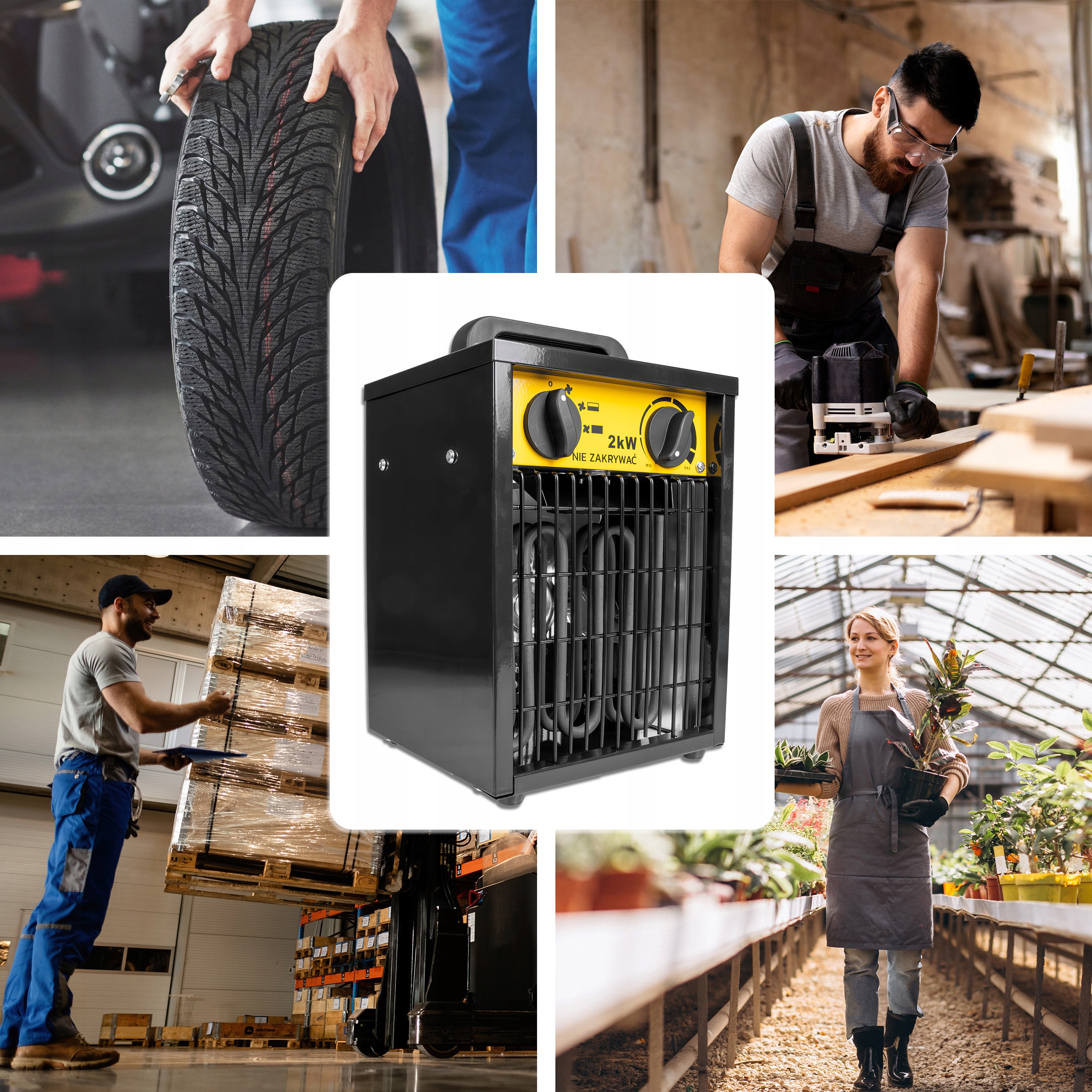 Мощность 2000 Вт позволяет за несколько мгновений поднять температуру в помещении. Идеально подходит для гаражей, мастерских, складов или домов, где вам необходим немедленный тепловой комфорт.