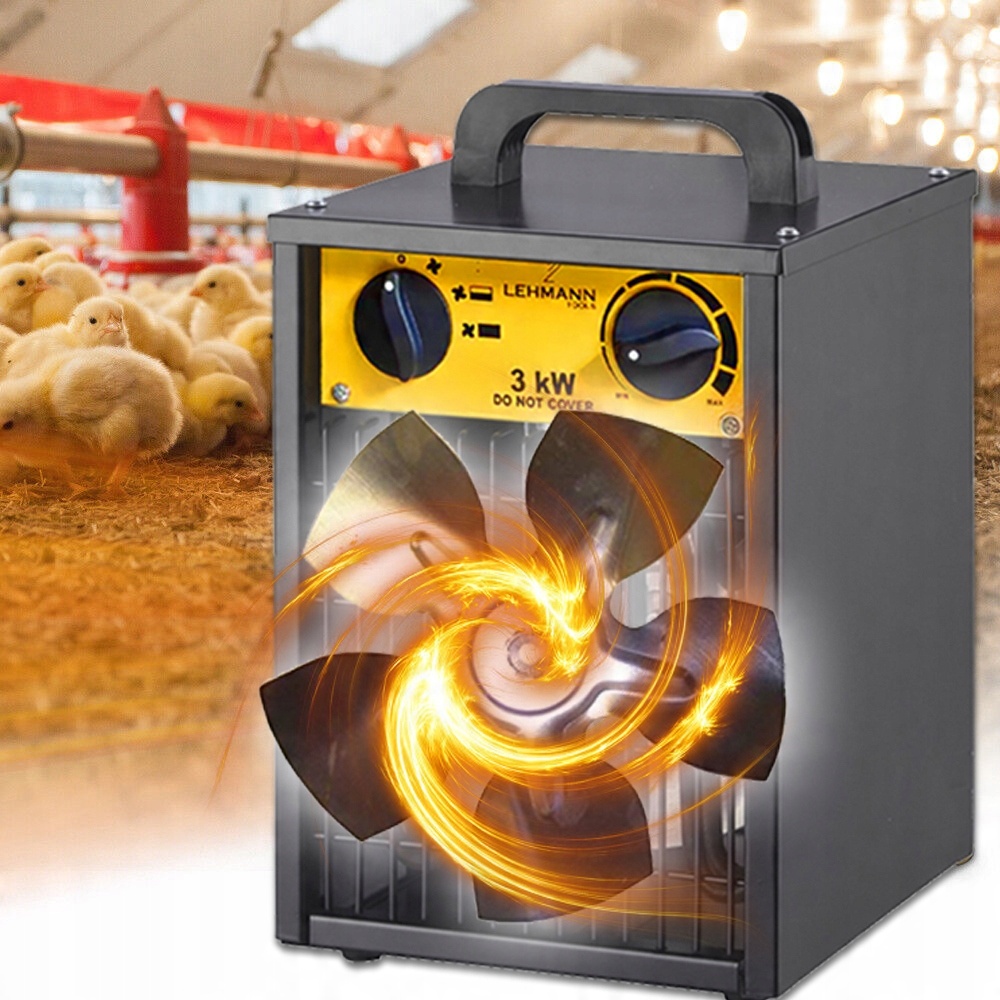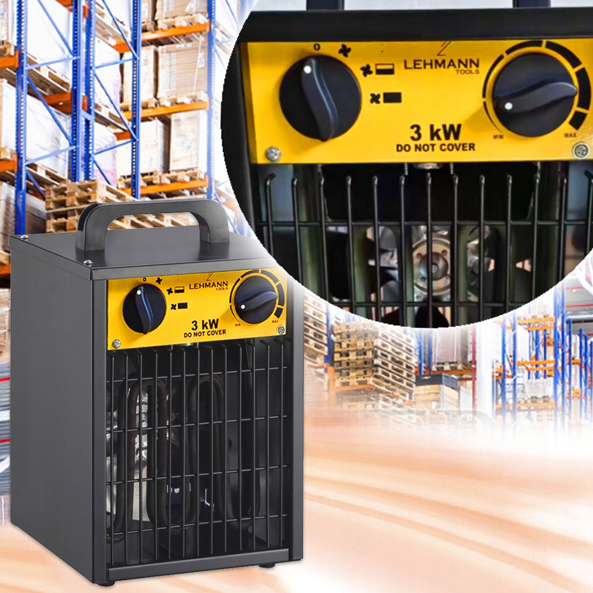 Мощность обогревателя в 3000 Вт гарантирует его безупречную работу, обеспечивая быстрое и эффективное повышение температуры даже на складах и в гаражах. Благодаря высокой мощности, регулированию уровня нагрева и точному термостату вы можете настроить его работу в соответствии со своими потребностями, гарантируя комфорт и экономию энергии.