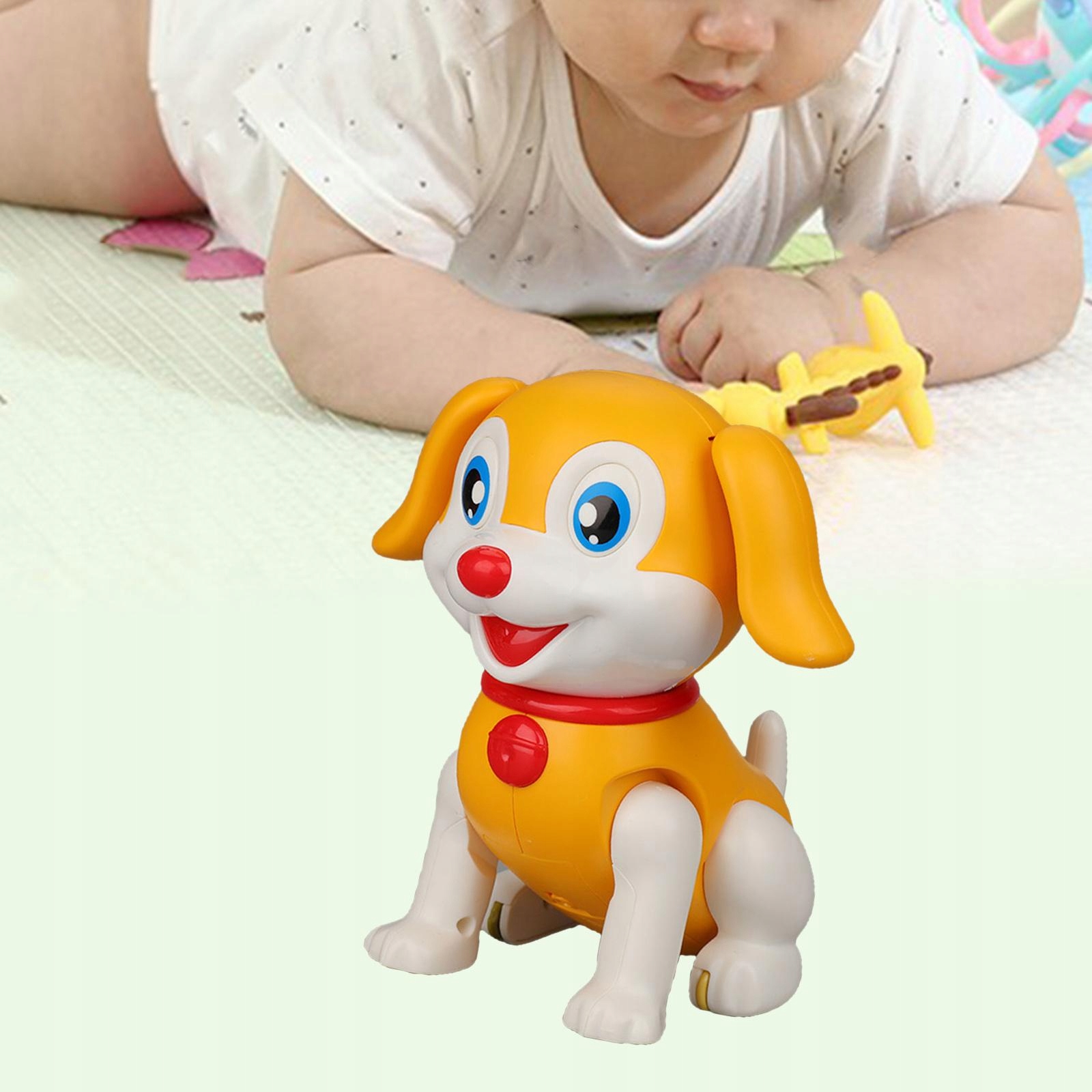 Elektroniczny interaktywny pies z kreskówek z diodą LED i dźwiękiem dla dzieci w kolorze żółtym