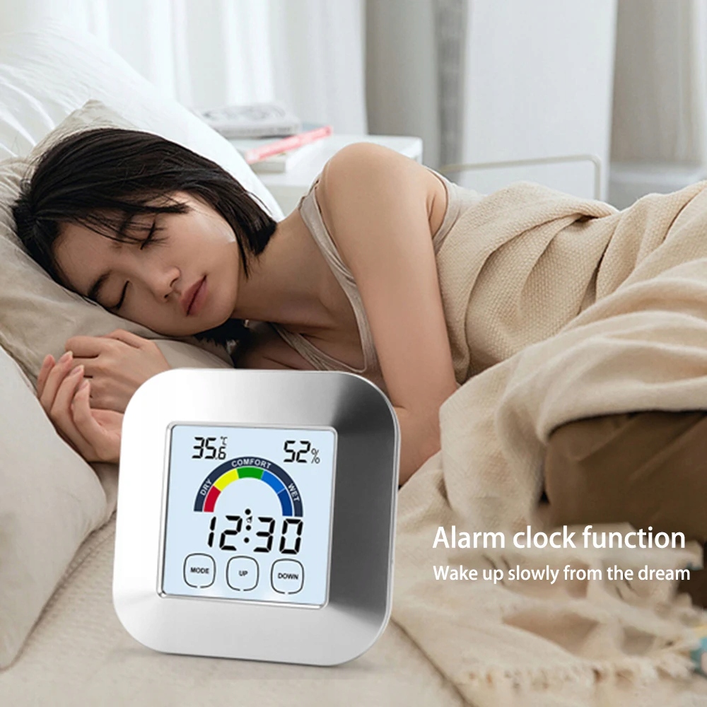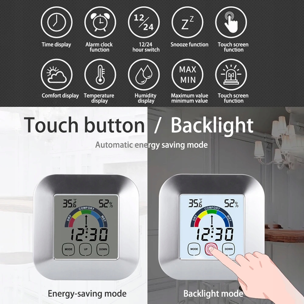 ЖК -сенсорный экран. Различные функции: температура и влажность, комфорт, часы, будильник, 12/24 часы переключения, функция сенсорного экрана и т. Д.