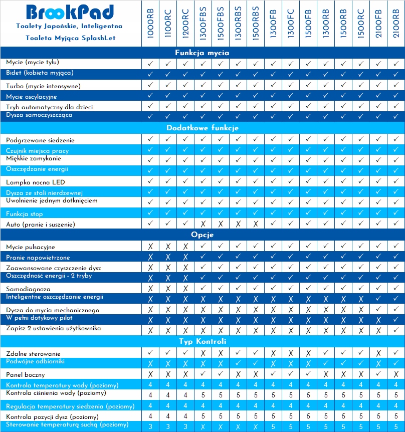 <ул>BrookPad был создан с идеей создания электрических биде. Наши сиденья для биде с электроприводом совместимы с большинством унитазов — просто замените верхнюю крышку на сиденье для биде с электроприводом BrookPad, и все готово. В вашем распоряжении стирка, сушка и другие функции, обеспечивающие комфорт и удобство в вашей ванной комнате. Первые две модели уже доступны в Польше. SplashLet 1200RC – новейший продукт известного американского производителя BrookPad из США, страны, где унитазы-биде очень популярны и имеют самую высокую рыночную стоимость. Модели SplashLet 1200FC и SplashLet 1200RC — последние версии этого производителя. Сиденье модернизировали, сделав его еще более удобным и эргономичным. Как и SplashLet 1200FC, SplashLet 1200RC имеет многофункциональную панель управления. Как и другие модели BrookPad, он также имеет процесс стерилизации, который делает воду антибактериальной и противогрибковой. Благодаря своим размерам он подходит к большинству существующих унитазов. Система крепления с монтажной пластиной позволяет регулировать сиденье вперед и назад, чтобы идеально подогнать сиденье к существующей керамике унитаза.