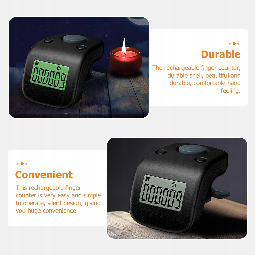 ✅Перезаряжаемый счетчик пальцев, прочный корпус, красивый и прочный, удобный на ощупь.