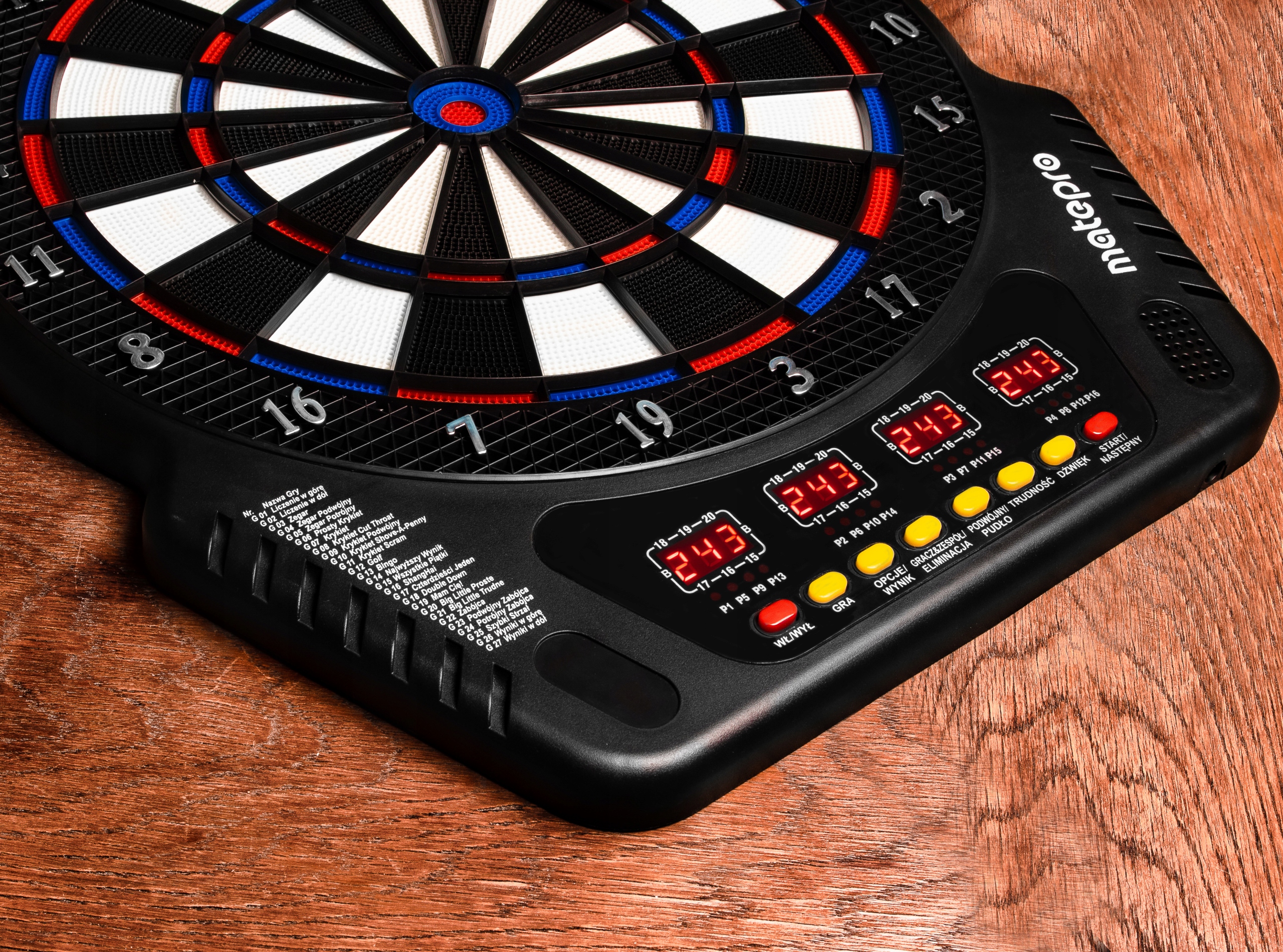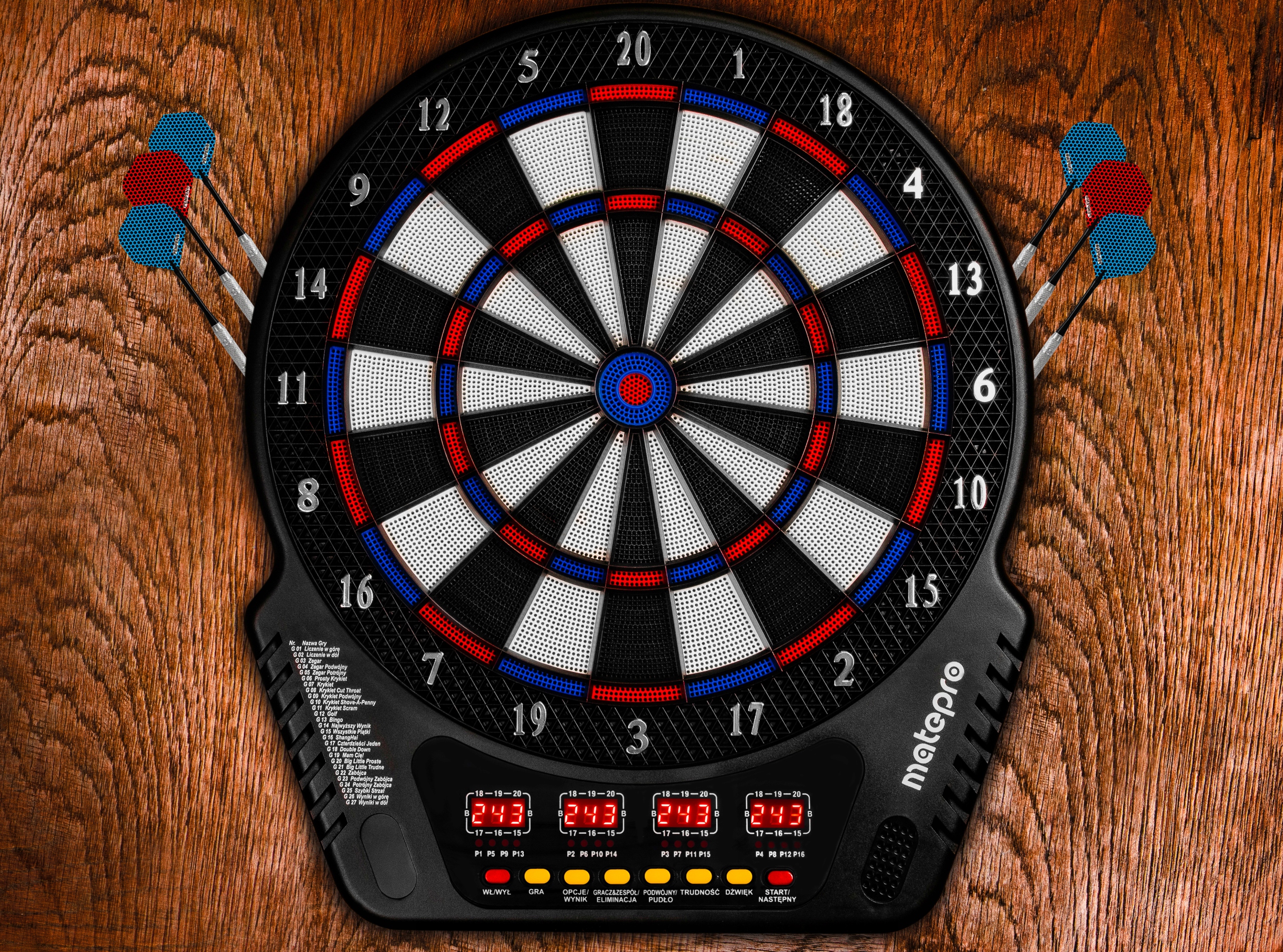 Значительно улучшен Самый популярный электронный дартс от известного бренда MatePro с совершенно новым дартсом, который вы можете узнать в синем и красном цвете цвета.