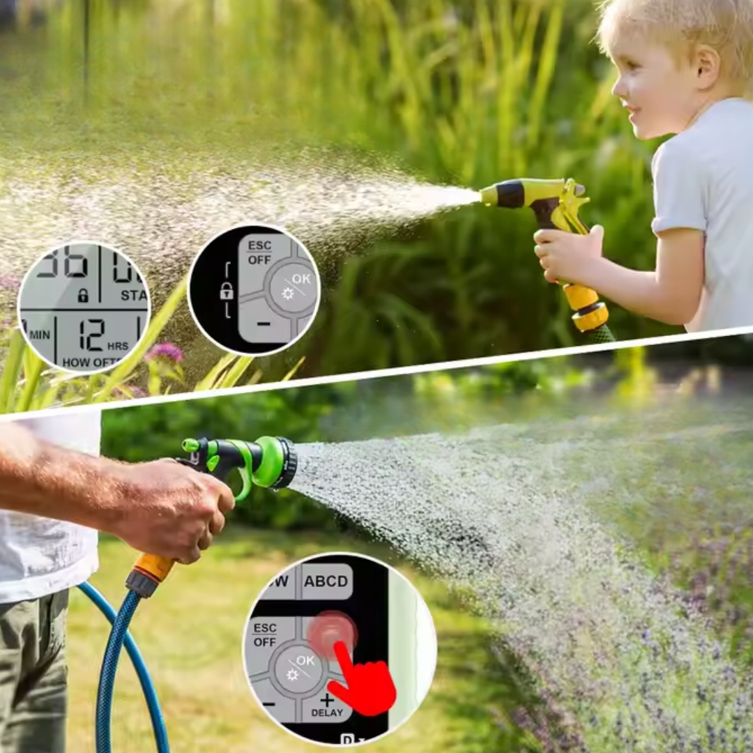автоматизировать полив в саду и сэкономить воду! контроллер ирригации позволяет запрограммировать время и частоту поливы, обеспечивая идеальную гидратацию растений. Легкая работа и большой ЖК -дисплей делают управление ирригацией простым и удобным