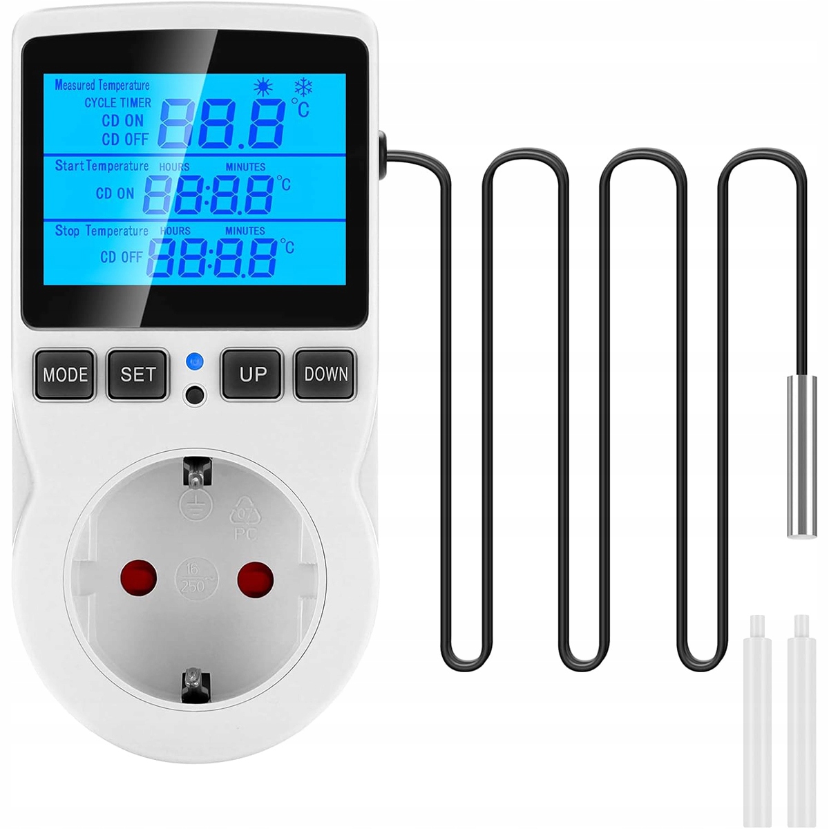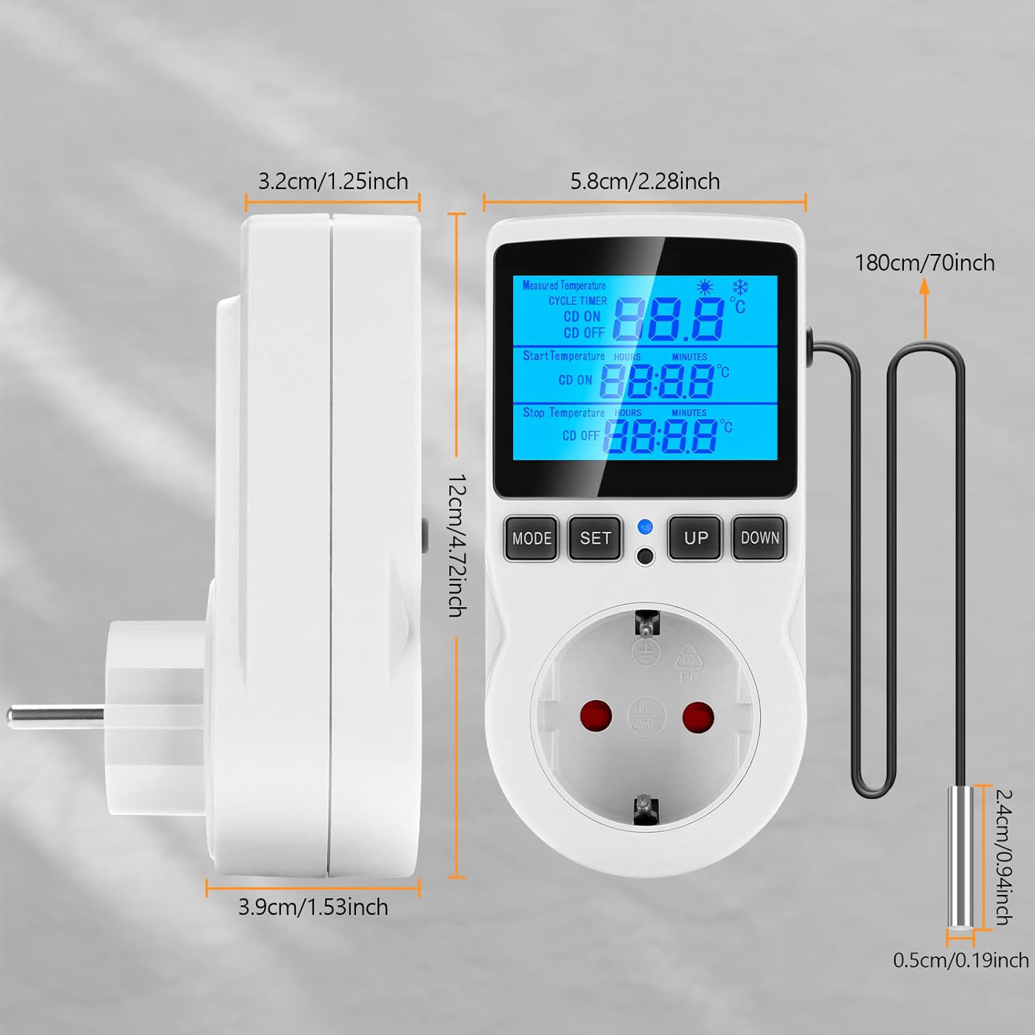 ⭐⭐⭐ ⭐⭐⭐ ⭐⭐⭐ контроллер температуры (плагин ЕС) 230 В с гнездом термостата цифрового датчика переключателя температуры нагрева и охлаждения в тепличный холодильник (белый с синим освещенным ЖК -экраном) ⭐⭐⭐ h1>