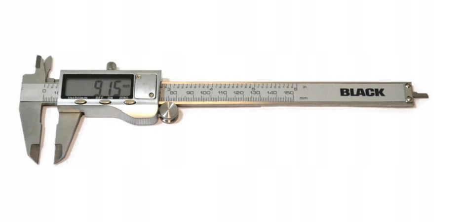 Штангенциркуль изготовлен из нержавеющей стали, имеет точность 0,03 мм и диапазон измерения 0-150 мм.