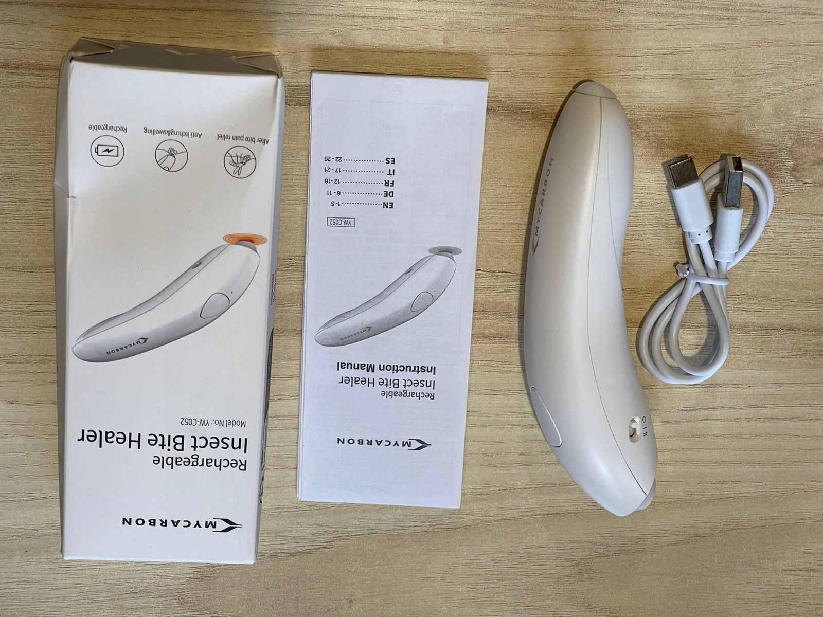 MYCARBON YW-C052 — это электронное устройство для наружного лечения укусов насекомых и насекомых (например, комаров, ос, пчел, крыс или гусей).