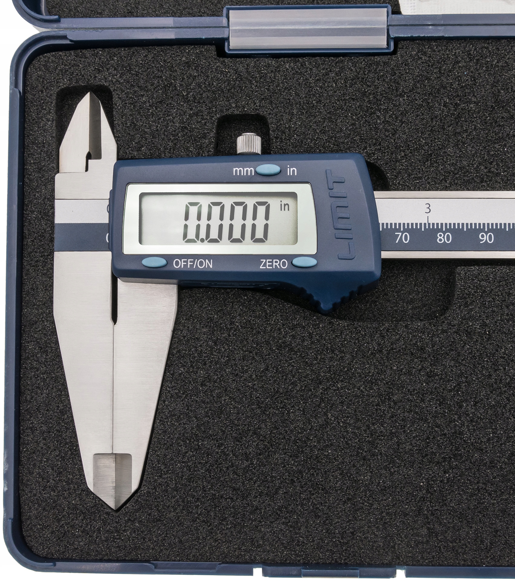 Цифровой штангенциркуль, соответствующий стандарту DIN 862. Три типа индикации: десятичные доли мм/дюйм. . Изготовлен из нержавеющей стали. Автоматическое включение и выключение питания. 4-функции измерения, относительное измерение.
