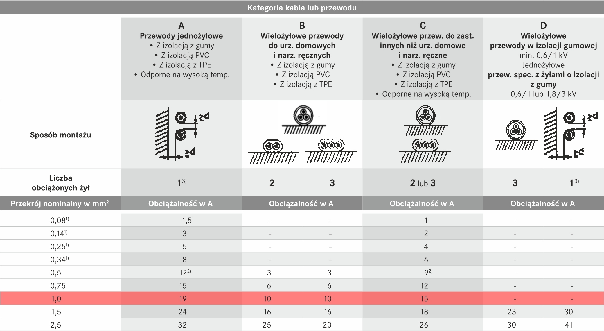Заводской трехжильный кабель Оригинального электронного манометра EWC PROTECT 3.0 имеет сечение 1,0 мм2 - согласно таблице это означает, что он может воспринимать максимальную нагрузку 20А при запуске и длительную нагрузку до 15А во время работы. Это важная информация, на которую следует обратить внимание при совершении покупок.