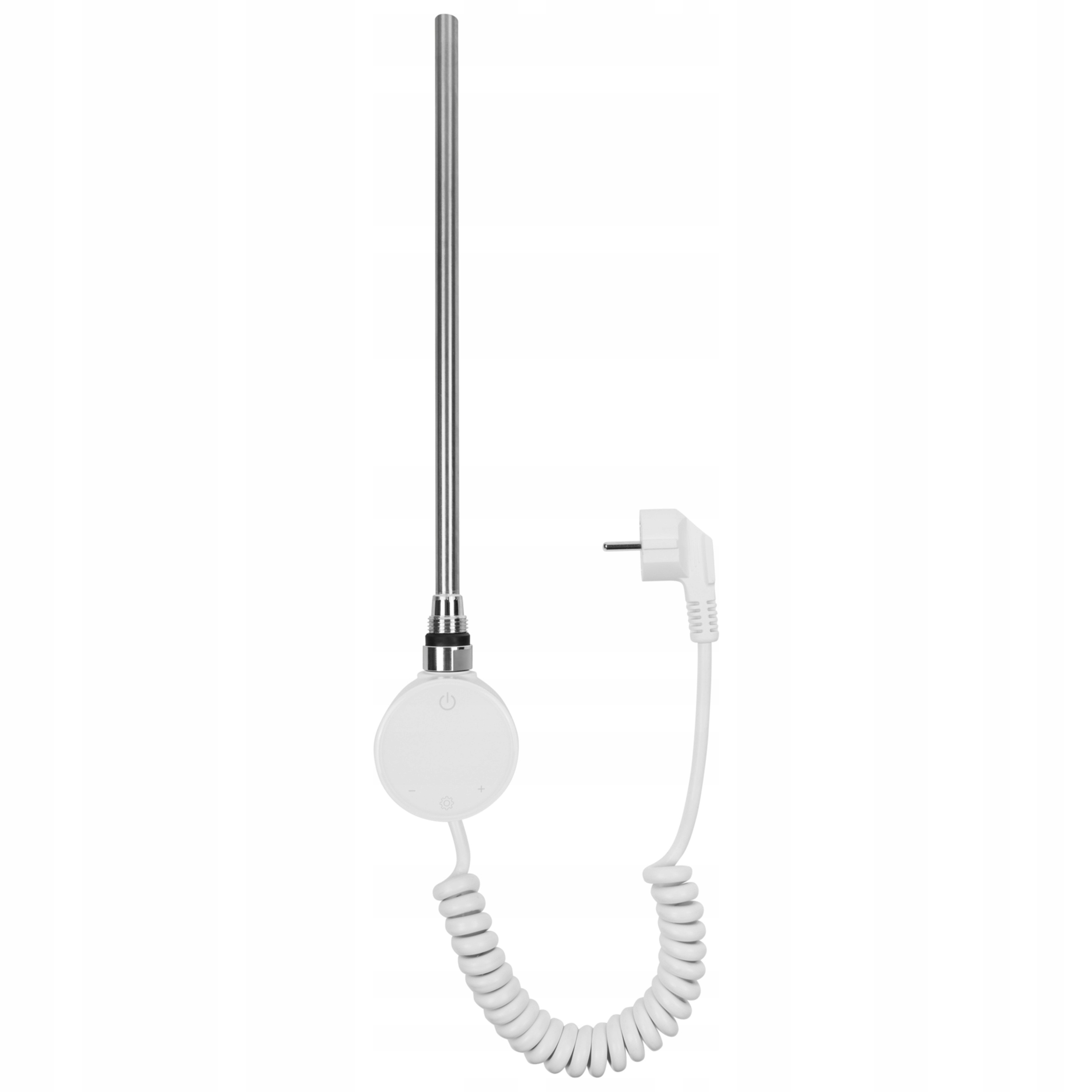 Электрический нагреватель со спиральным кабелем и вилкой. Дополнительные аксессуары видны на фотографиях, например. тройники, вентили, радиаторы не продаются вместе с обогревателем и служат лишь для демонстрации возможных способов монтажа.