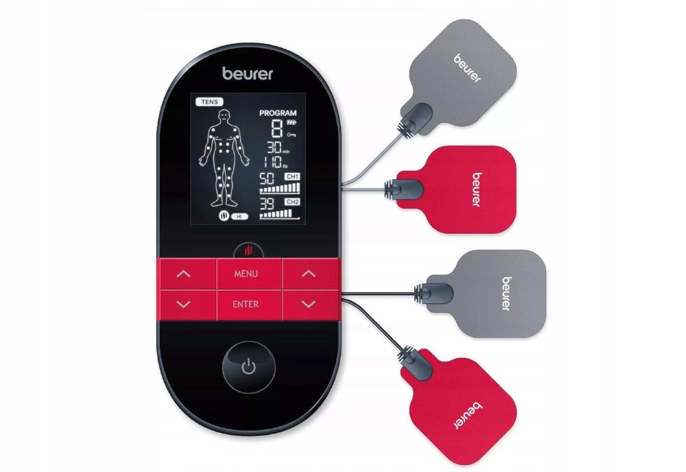 Электростимулятор BEURER EM 59 имеет 4 электрода, гарантийный талон и руководство пользователя.