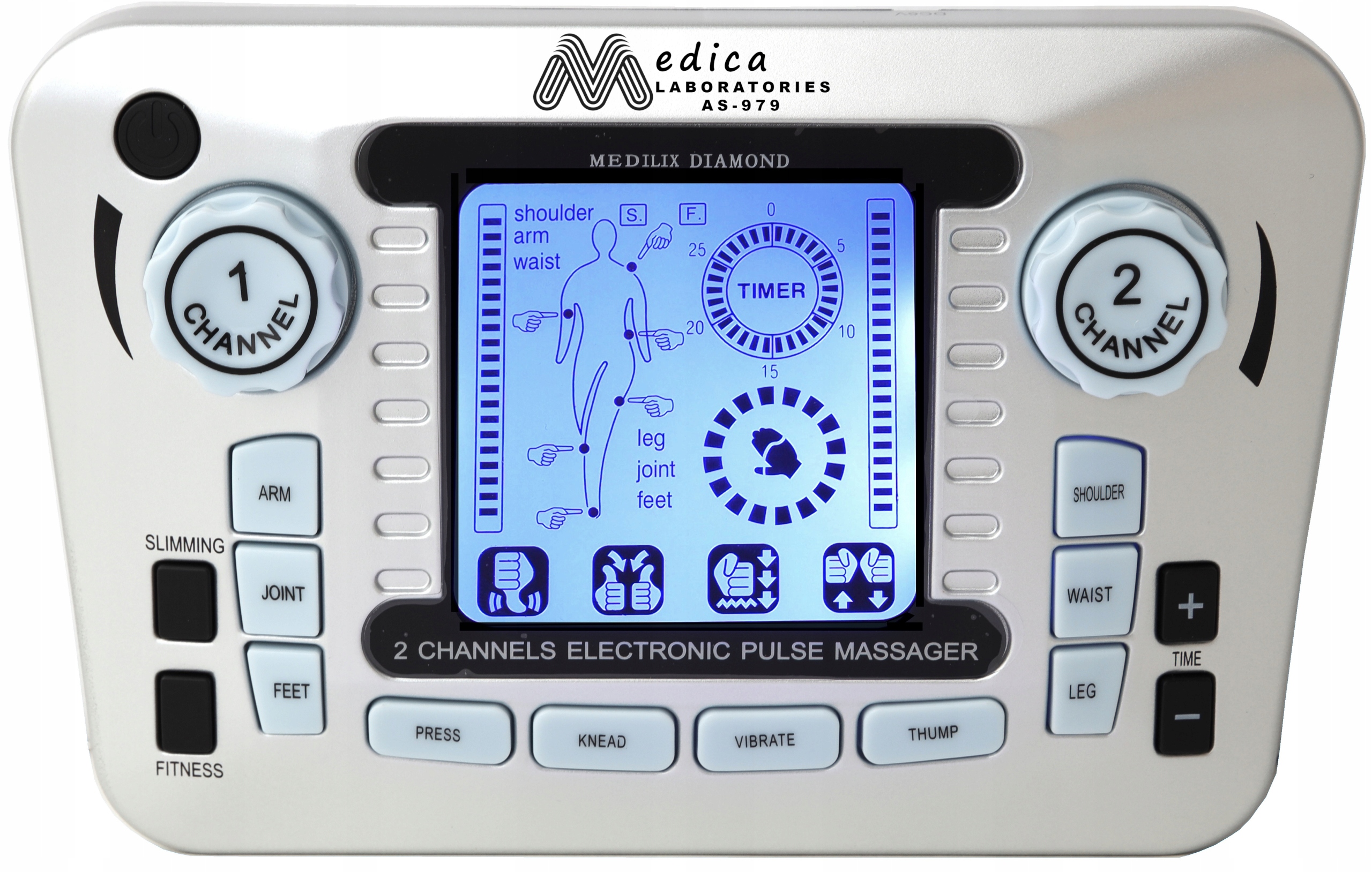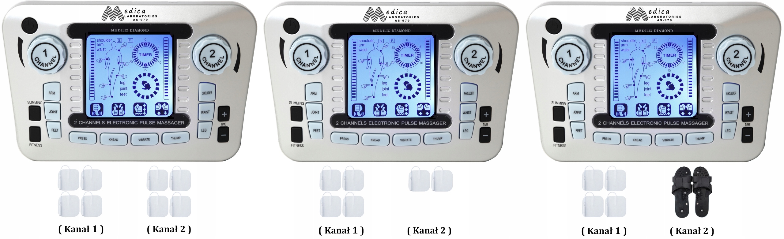 ДВУХКАНАЛЬНАЯ ЭЛЕКТРОСТИМУЛЯЦИЯ AS-979 С АКСЕССУАРАМИ + 3 ВИДА ЭЛЕКТРОДОВ (всего 23 ЭЛЕКТРОДА) + ПАРА КЛАПАНОВ + 4 БАТАРЕИ АА + 2 КАБЕЛЯ (на 4 электрода) + КАБЕЛЬ (на 2 электрода) + СУМКА (ЧЕХОЛ) ) ДЛЯ ХРАНЕНИЯ ВСЕГО НАБОРА