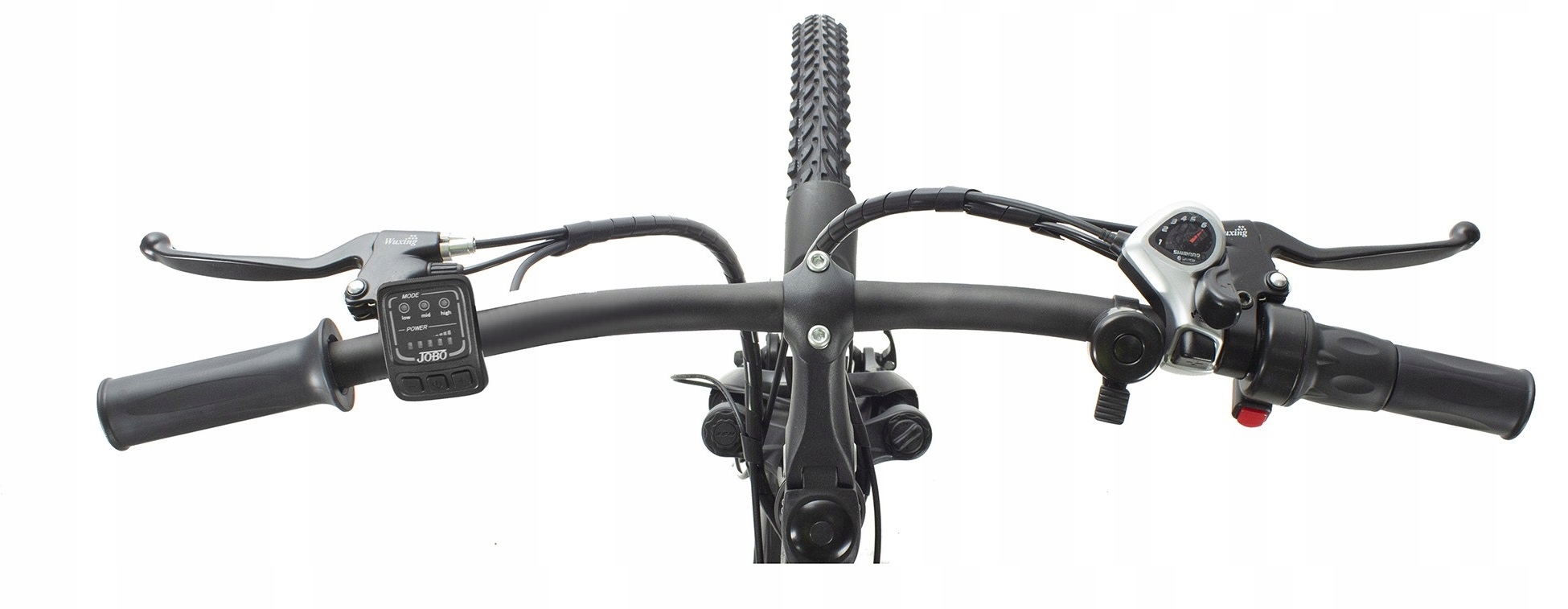 Велосипед, оснащенный светодиодным дисплеем, расположенным с левой стороны руля, отображающим уровень заряда аккумулятора и текущий режим, в котором мы ездим. Справа вы найдете дроссель, который поможет вам завести мотоцикл (дроссель разгоняет вас до максимальной скорости 8 км/ч). Кроме того, вы найдете тормозные рычаги марки Wuxing, известные по большинству велосипедов.