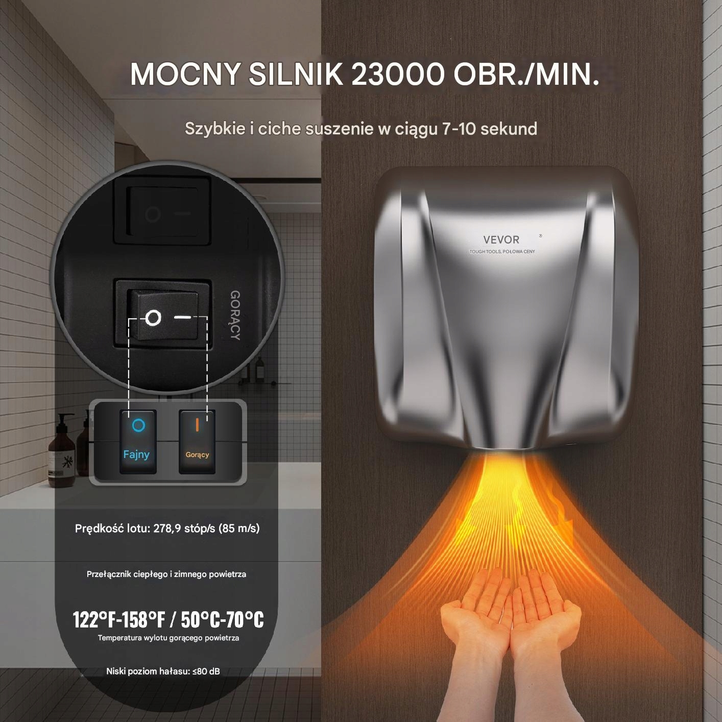 Elektryczna suszarka do rąk automatyczna cicha 1800W
