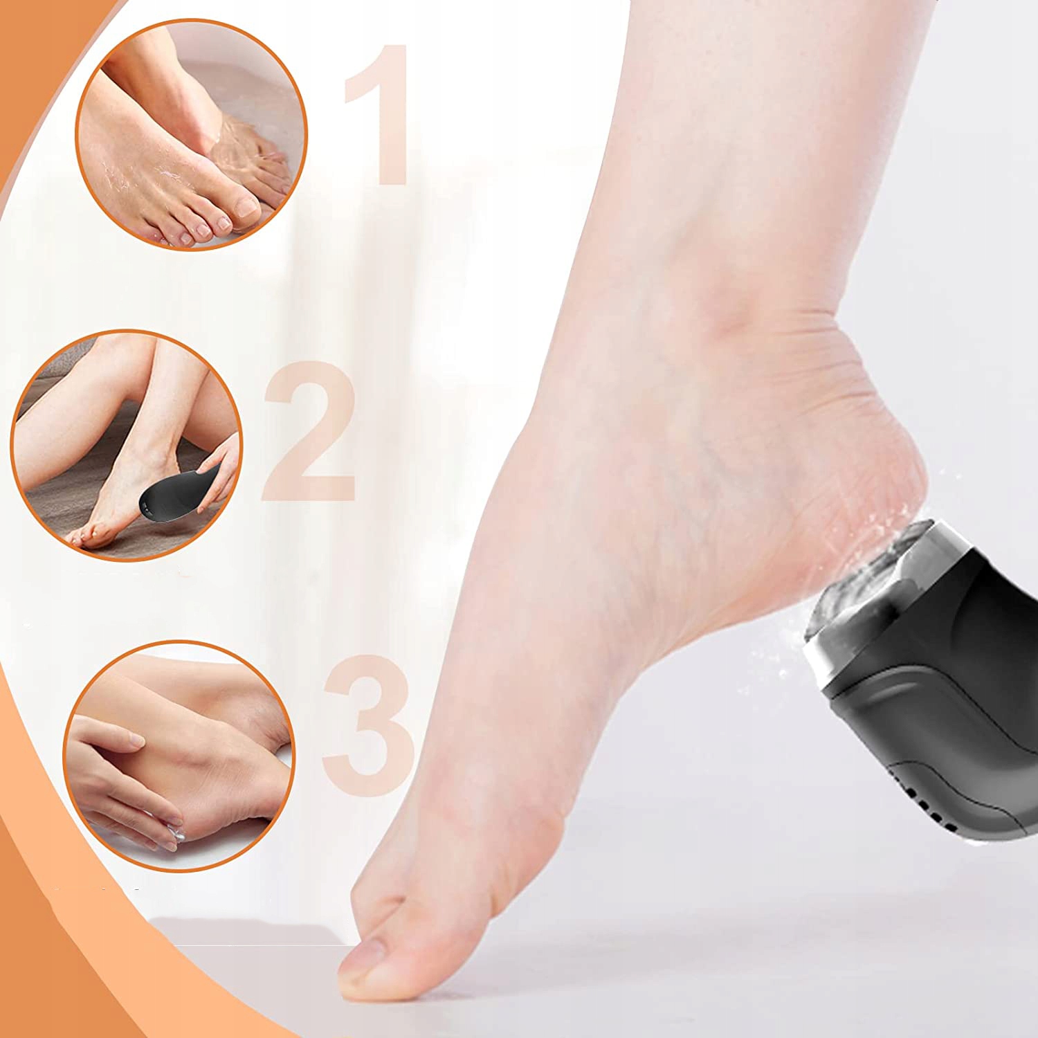- Доступны 3 сменные абразивные головки: грубая абразивная головка для стойких мозолей, средняя абразивная головка для грубой, омертвевшей кожи и тонкая абразивная головка для ежедневного использования. уход за кожей.