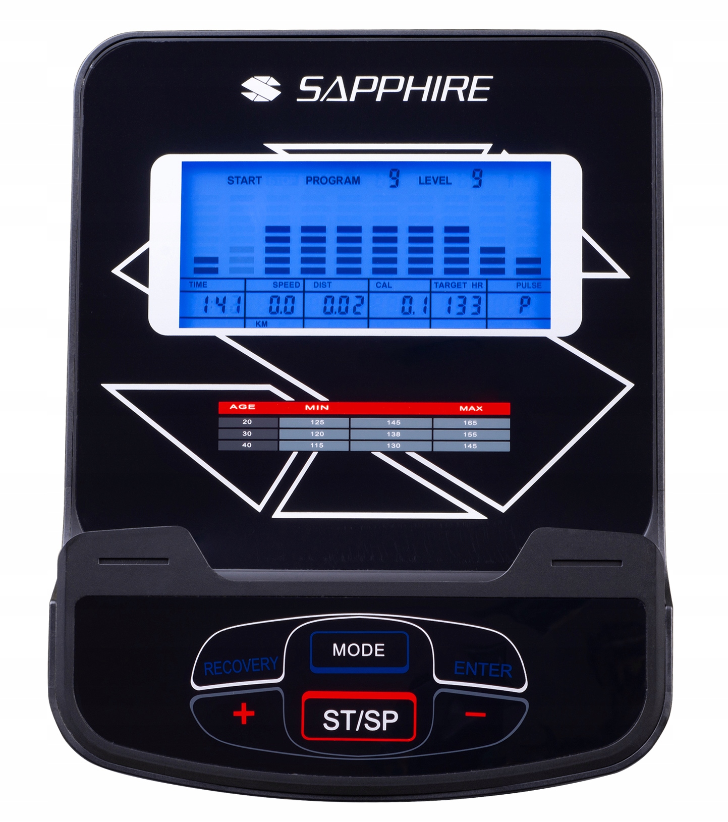 - Особенно большой упор был сделан на комфортность самой тренировки – большое количество программ тренировок обеспечит напряженную работу на многие месяцы. Имитация горной ходьбы, бег по ровной местности, интервальные тренировки как в фитнес-клубе?Компьютер Sapphire Spectra сам будет менять сопротивление в зависимости от выбранной программы тренировок! *Фотографии демонстрируют визуализацию программы и не отображаются на тренировочном компьютере.