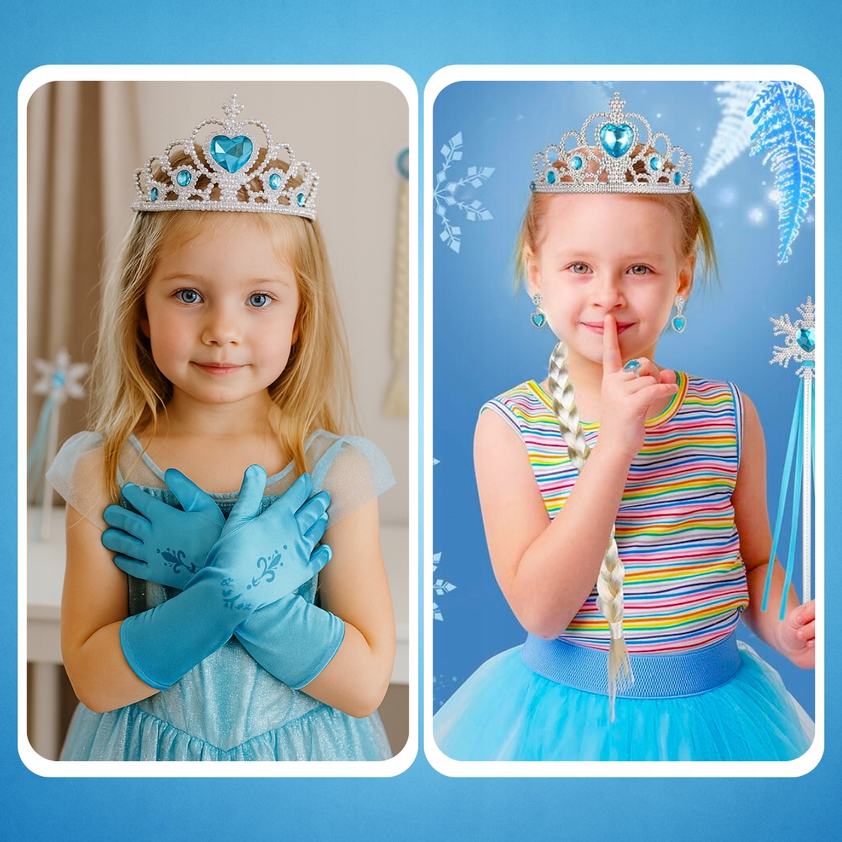 👑 КОМПЛЕКТ ПРИНЦЕССА ЭЛЬЗА – ПЛАТЬЕ + АКСЕССУАРЫ 4в1