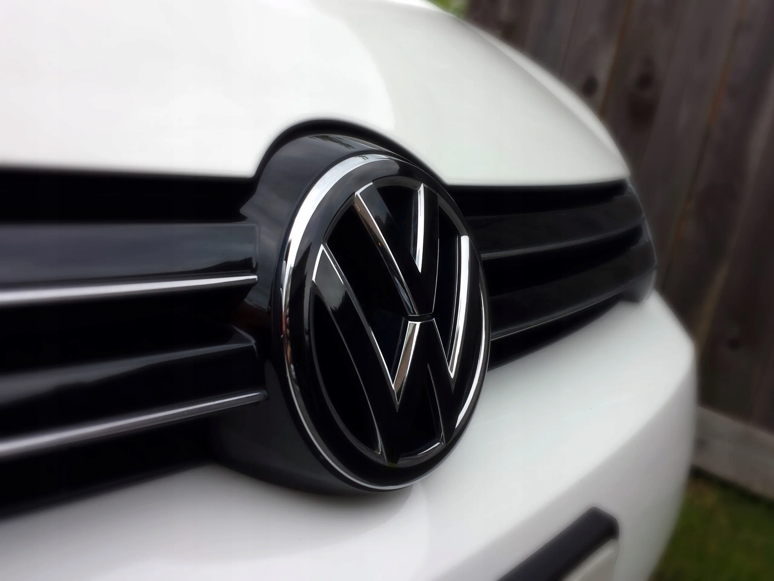 Пара новых черных эмблем на замену для Volkswagen Golf 6. Одна на передней части решетки радиатора, другая на задней крышке багажника.