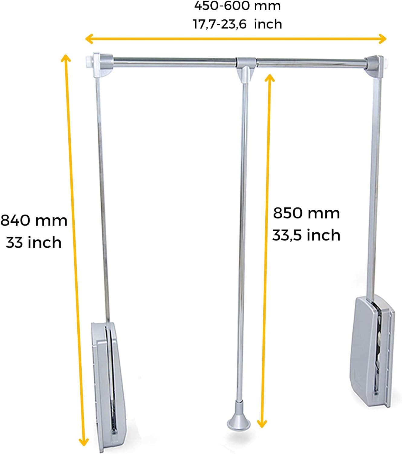 - Ширина телескопическая 450-600 мм с возможностью адаптации к внутренним размерам шкафа