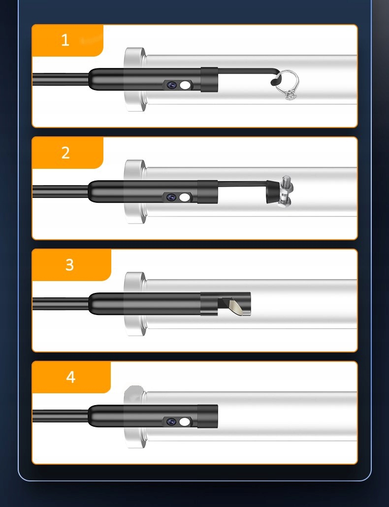 Представленный продукт можно использовать где угодно, в щелях, куда не добраться человеческим глазом - но места достаточно, чтобы туда пролез узкий кабель с камерой.