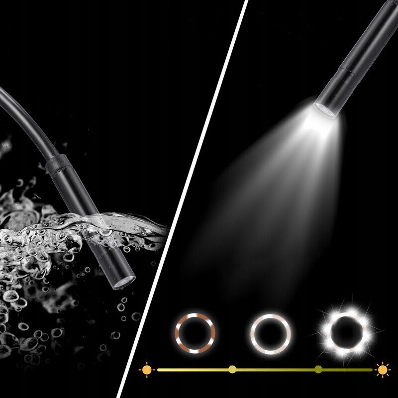 ✅Со светодиодной подсветкой и водонепроницаемостью IP67: Оснащен 8 сверхяркими светодиодными лампами, яркость которых можно регулировать в зависимости от ситуации, что позволяет получить более четкое изображение в темноте. Зонд камеры имеет водонепроницаемость IP67 и может работать на глубине менее 1 м.