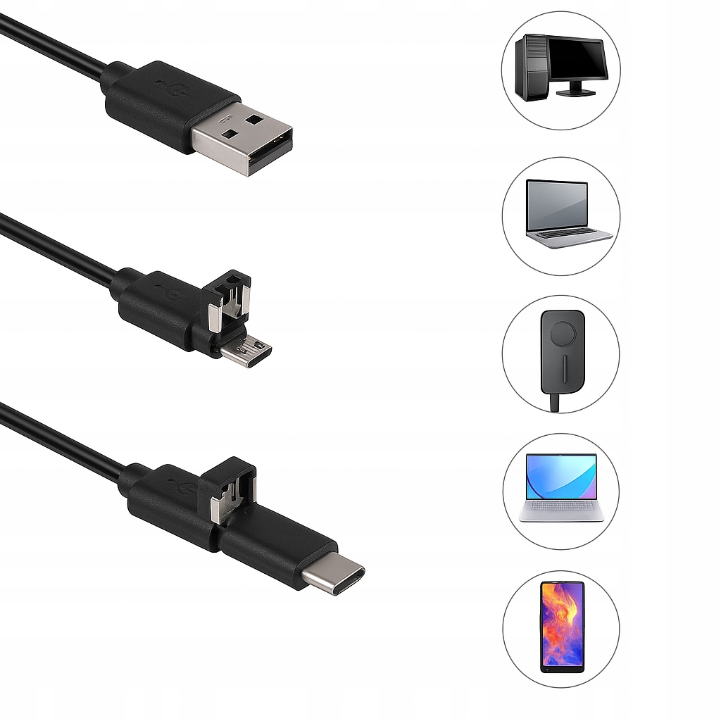 ✅ Три конца в наборе - боковое зеркало, крюч С помощью Android (USB-C, Micro USB OTG) и компьютеров (Windows)