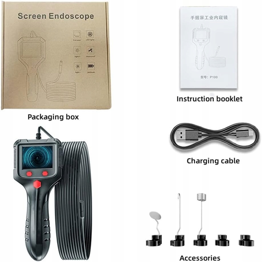 Эндоскопическая инспекционная камера с экраном HD1080p и светодиодом, водонепроницаемость 15 м