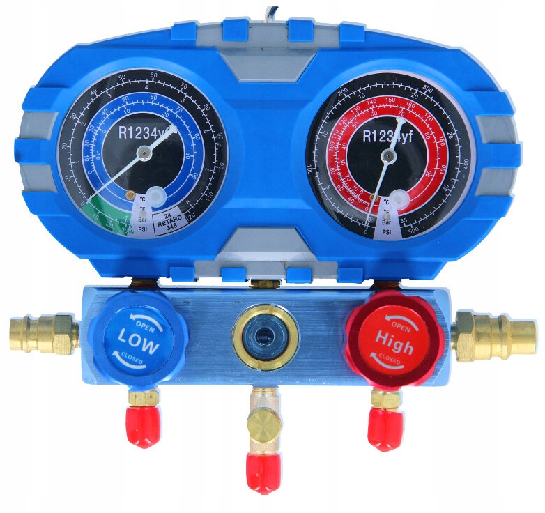 - Два манометра со шкалой для коэффициентов: R1234YF