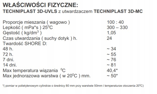 Смолы TECHNIPLAST 3D разработаны с учетом возможности поддержания минимально возможной температуры. во время схватывания, но при схватывании необходимо уделять особое внимание. Нанесение и весь процесс скрепления должны быть выдержаны.