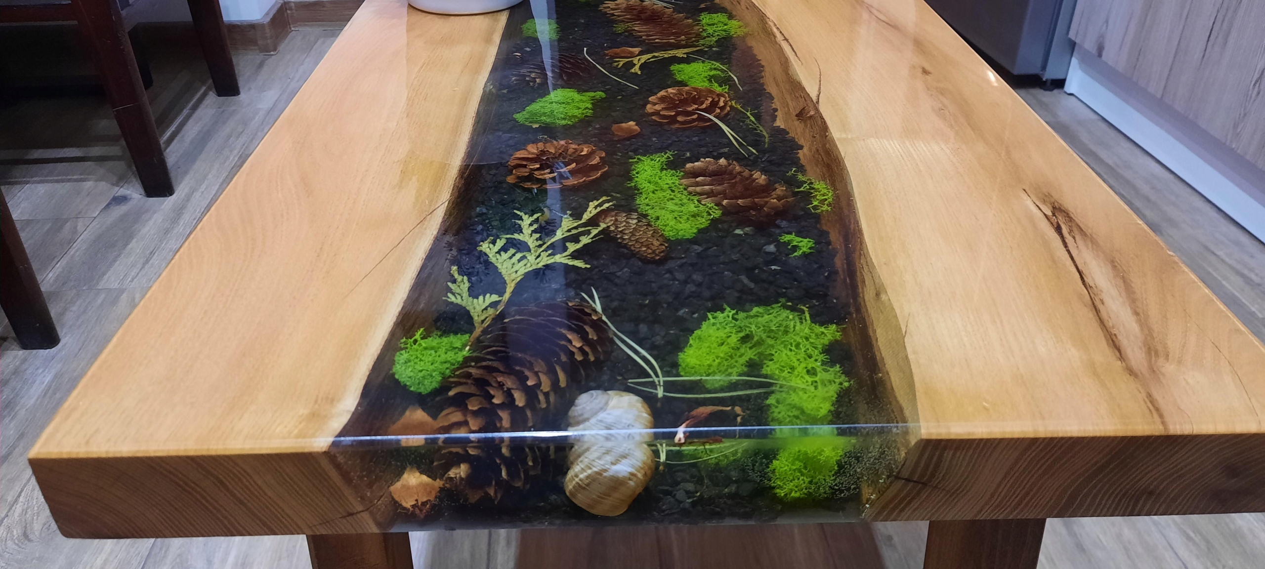 - заливка предметов прозрачной смолой, столешницы.