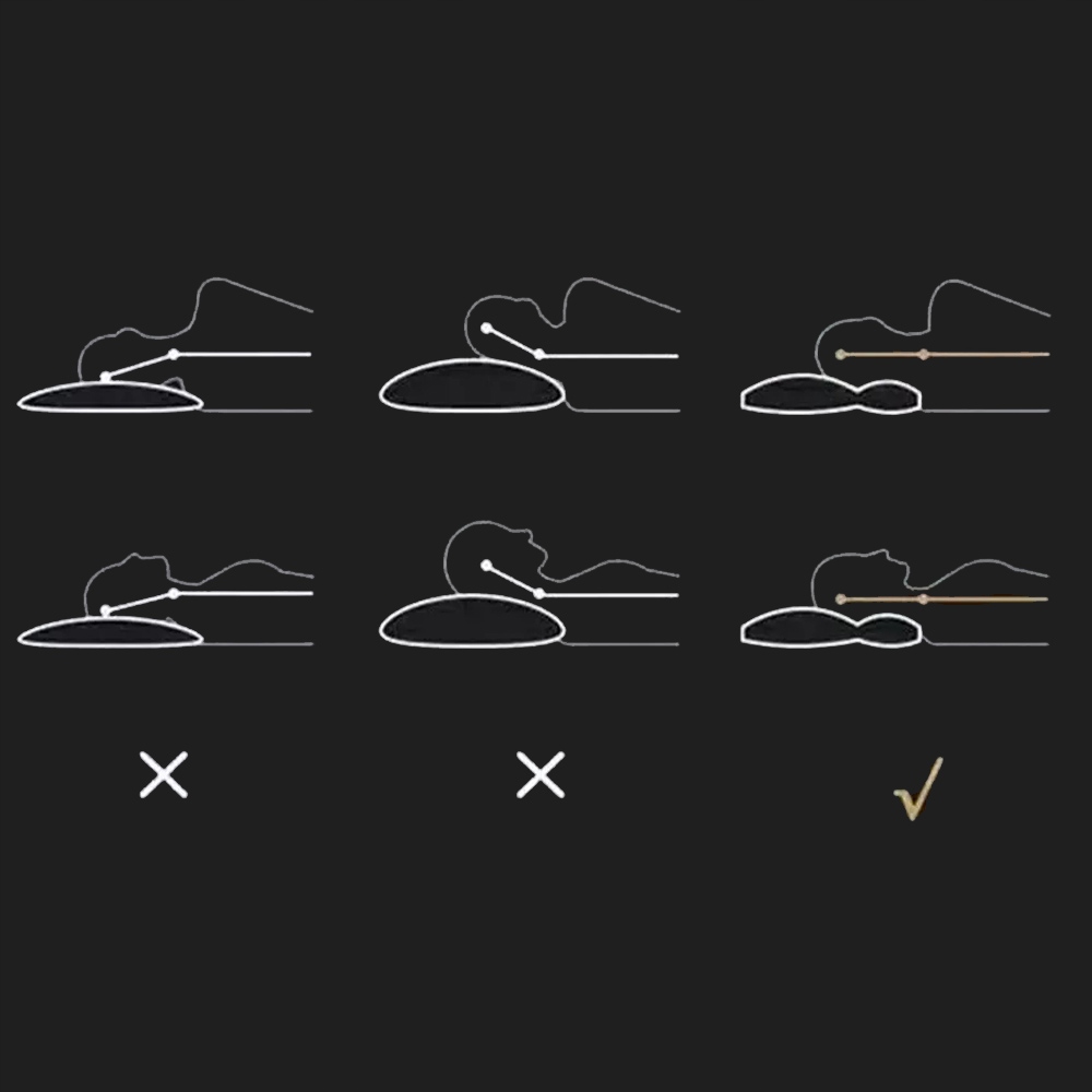 Эргономичная конструкция поддерживает и корректирует положение головы, шеи и плеч. Он имеет канавки, которые адаптируются к контурам головы и шеи, поддерживая голову и шею, уменьшая давление на шейный отдел позвоночника и позвонки, снимая боль и дискомфорт в шее и плечах, позволяя вам спать быстрее и крепче, а также улучшая качество сна.