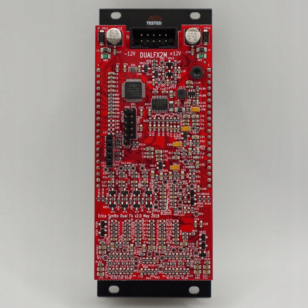Erica Synths ' Dual FX — это модуль эффектов с двумя отдельными блоками эффектов, из которых каждыйсодержитвосемь эффектов. Имеется два параметра: каждый блок и (Dry/Wet Mix) для выполнения индивидуальных настроек. Каждому входу блока CV можно назначить один из трех параметров, и можно сохранить весь параметр состояния. Аудиовыход канала 1 нормализуется на вход канала 2, поэтому вы без дополнительных усилий получаете захватывающие цепочки эффектов из обоих блоков эффектов. Подключение кабеля ко входу канала 2 прерывает нормализацию и оба эффекта работают независимо друг от друга.