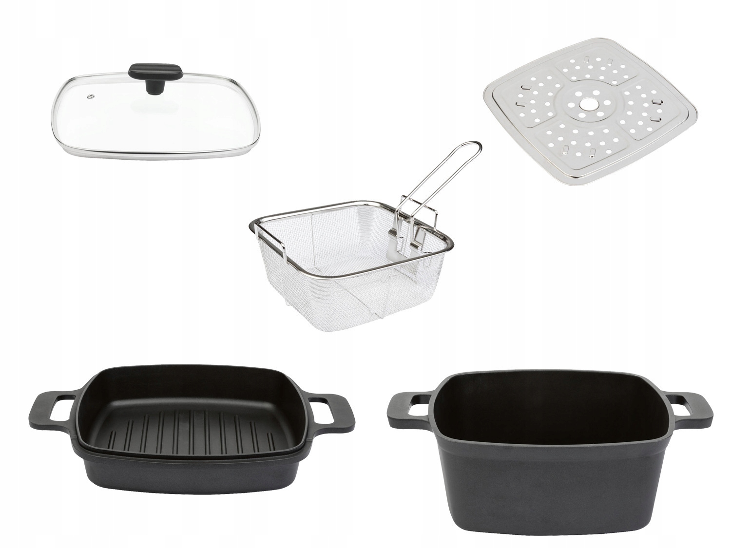 ERNESTO МНОГОФУНКЦІОНАЛЬНА КАСТОРОДНЯ З КРИШКОЮ 5 ЕЛЕМЕНТІВ ФРИТЮРНИЦЯ ГРИЛЬ