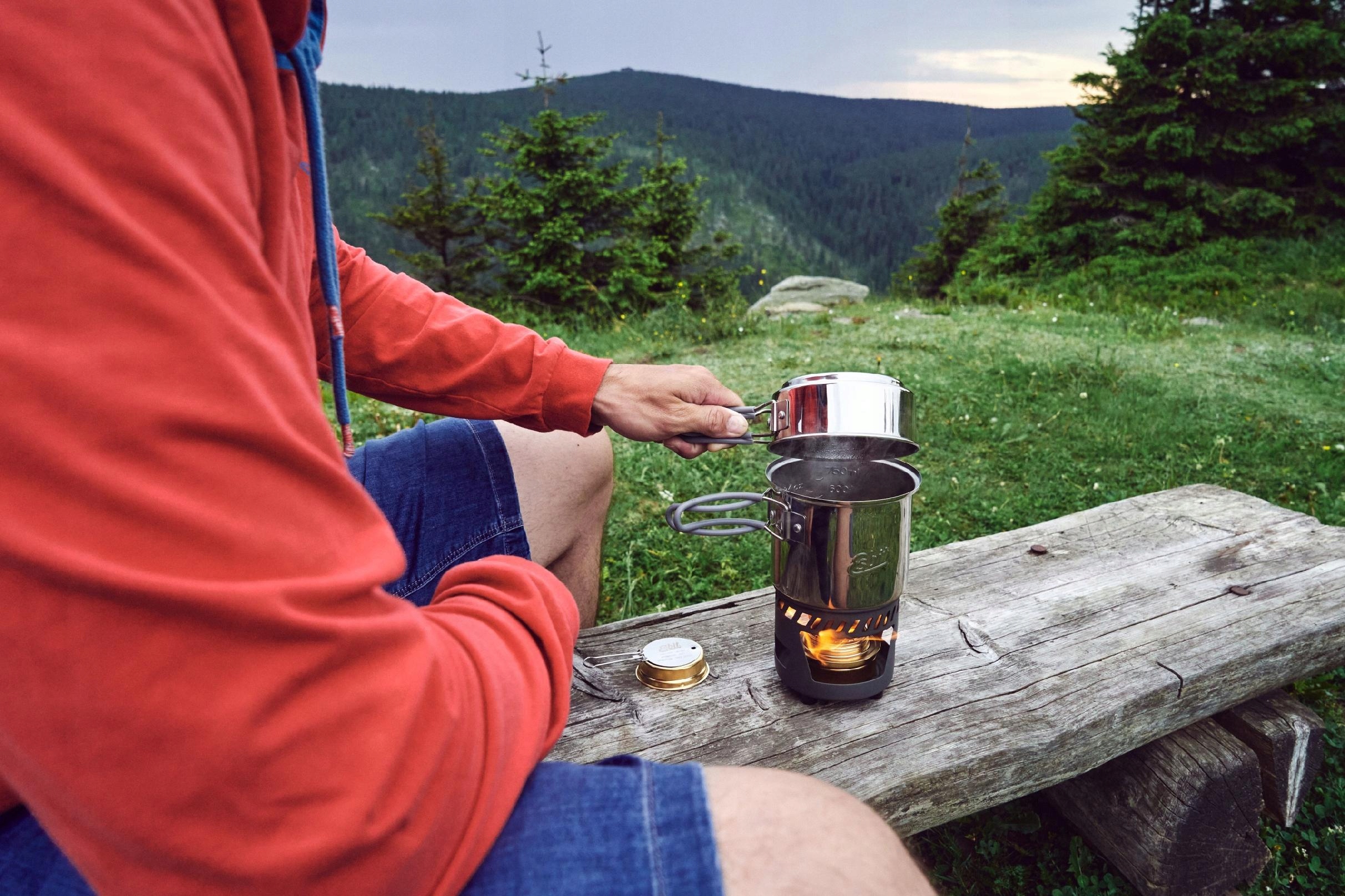 Esbit Cookset — это практичный полный набор для приготовления пищи. В комплект входит туристическая посуда из высококачественной нержавеющей стали, спиртовая горелка и устойчивая подставка. Незаменим во время горных походов, треккинга или кемпинга.< /п>