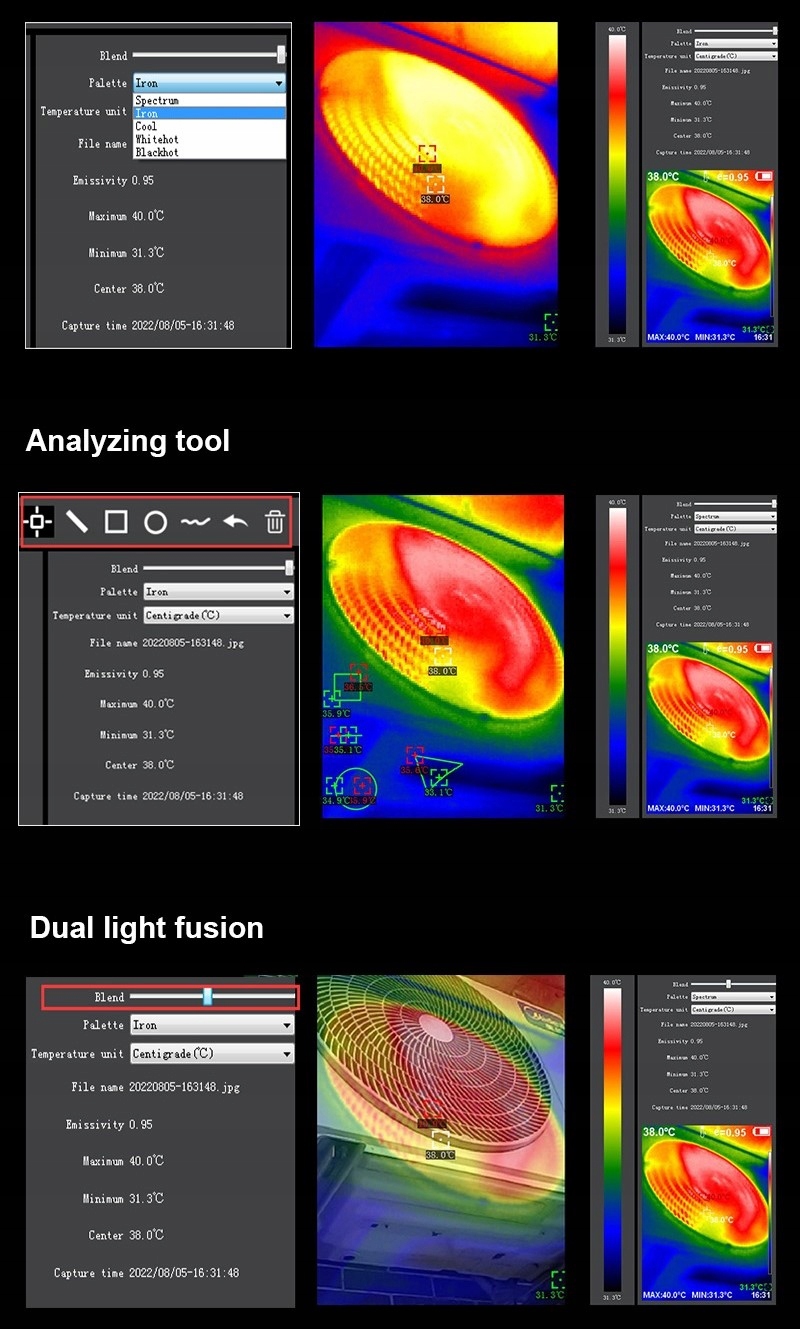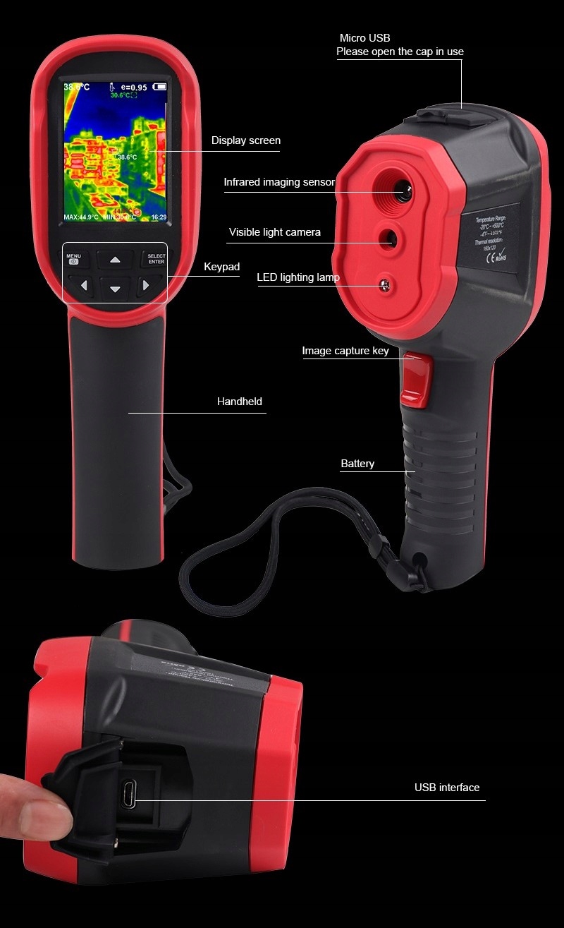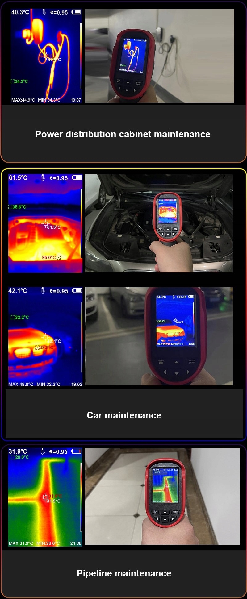 Камера ручной теплоизображения широко используется в медицине, археологии, транспорте, сельском хозяйстве, электронике ... Тепловая камера сочетает в себе функции измерения температуры поверхности и термического визуализации реального времени в реальном времени. Четко отображается на экране.