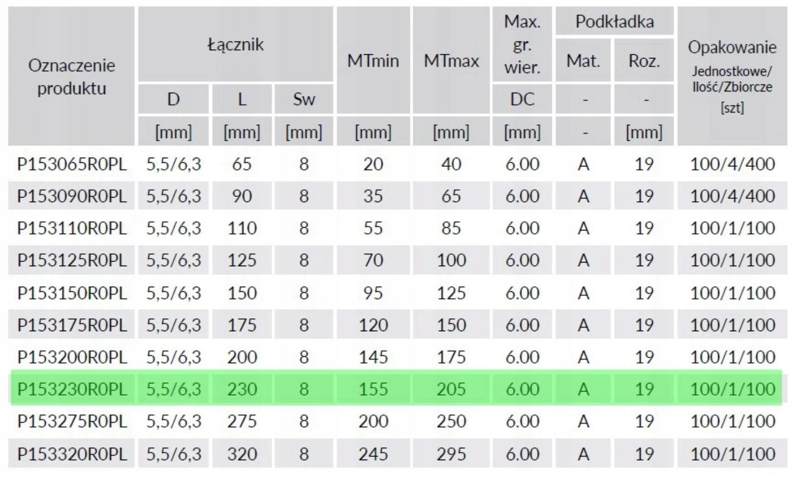 - Длина L – 230 мм.