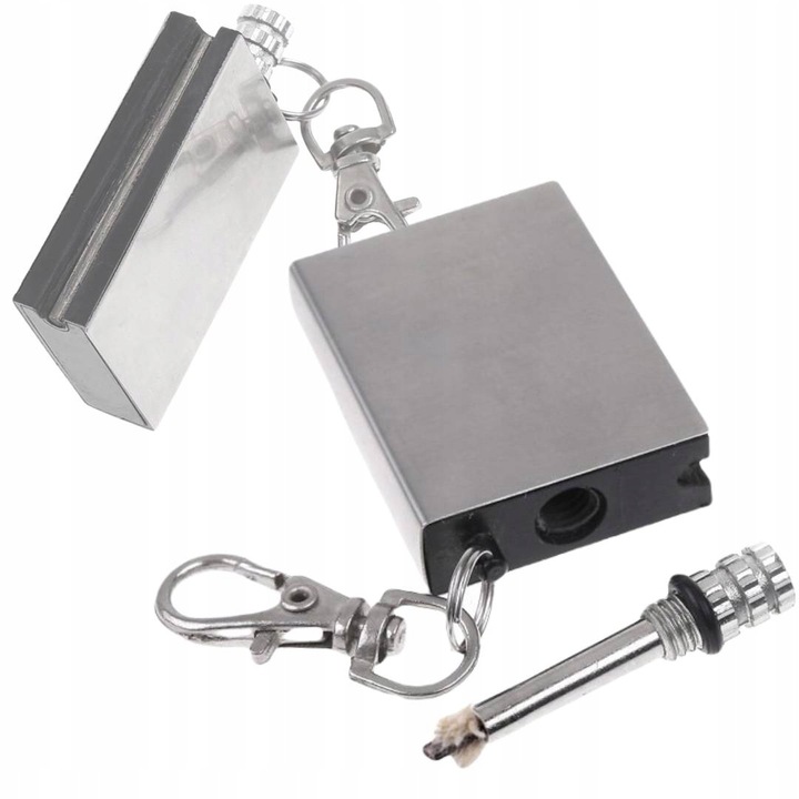 - Принцип работы очень прост! Просто частично заполните емкость керосином или бензином, погрузите в емкость металлическую спичку, а затем энергично потрите стальным кончиком спички о сердечник, чтобы образовались искры и произошло возгорание.