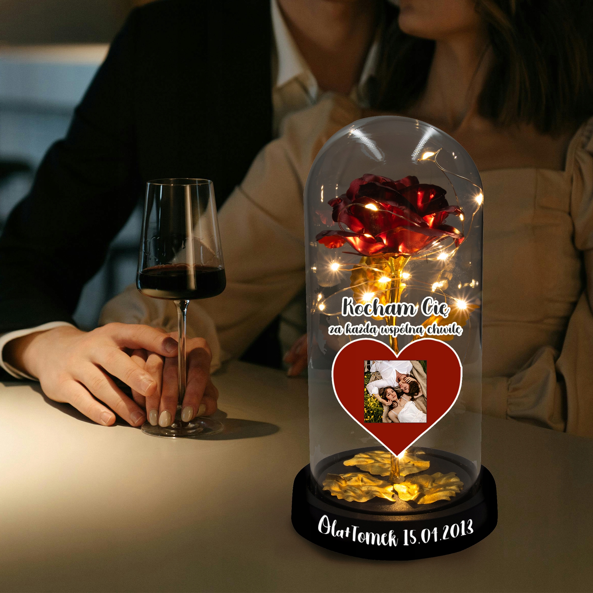 - Содержимое, которое вы отправляете в сообщении продавцу (фотографии, имена, дата), будет заменено в выбранном проекте и распечатано на стекле.