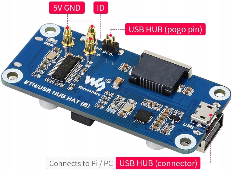 - разъем USB Hub: включает соединение с Raspberry Pi 4b/3b+/3a+/2b, используя USB-кабель