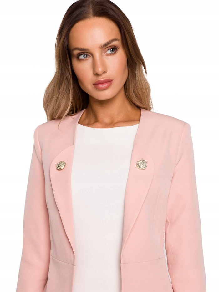 Ткань Куртка без крепешки с шеей V вдоль вырежь отрезать на линии талии резка и декоративные кнопки сзади Длинные, простые рукава Подушки на плечах Наша модель высотой 171 см и носит размер