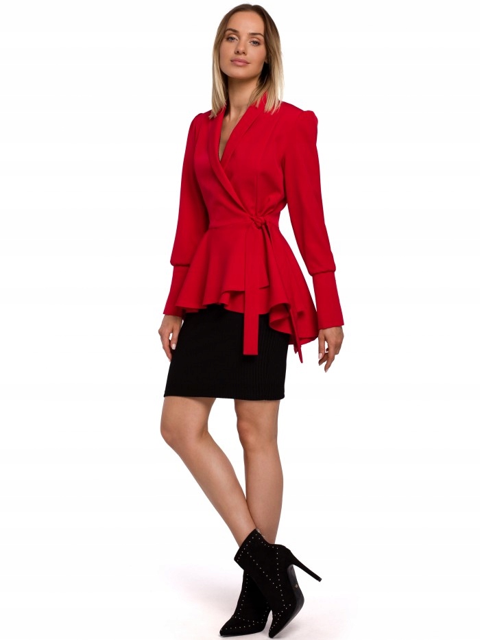 Уникальная куртка - Хвост. Ультра -фемейл, с сильно изложенной талией, подчеркнутой на стороне и волнистым хвостовым слоем. Длинные рукава были слегка сморщены с высокими манжетами с разрезом