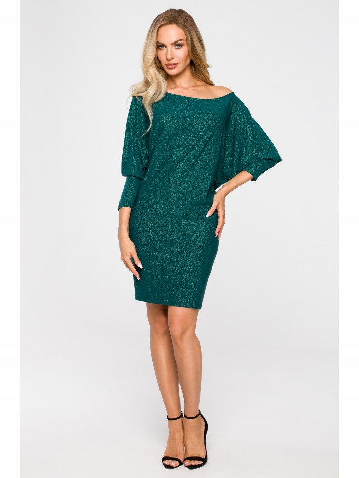 EU XL M723 Сукня з вирізом, що спадає з плеча - смарагдове EU XL