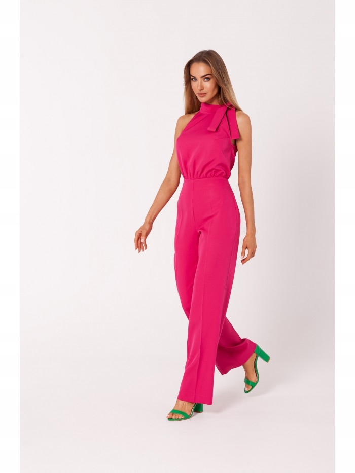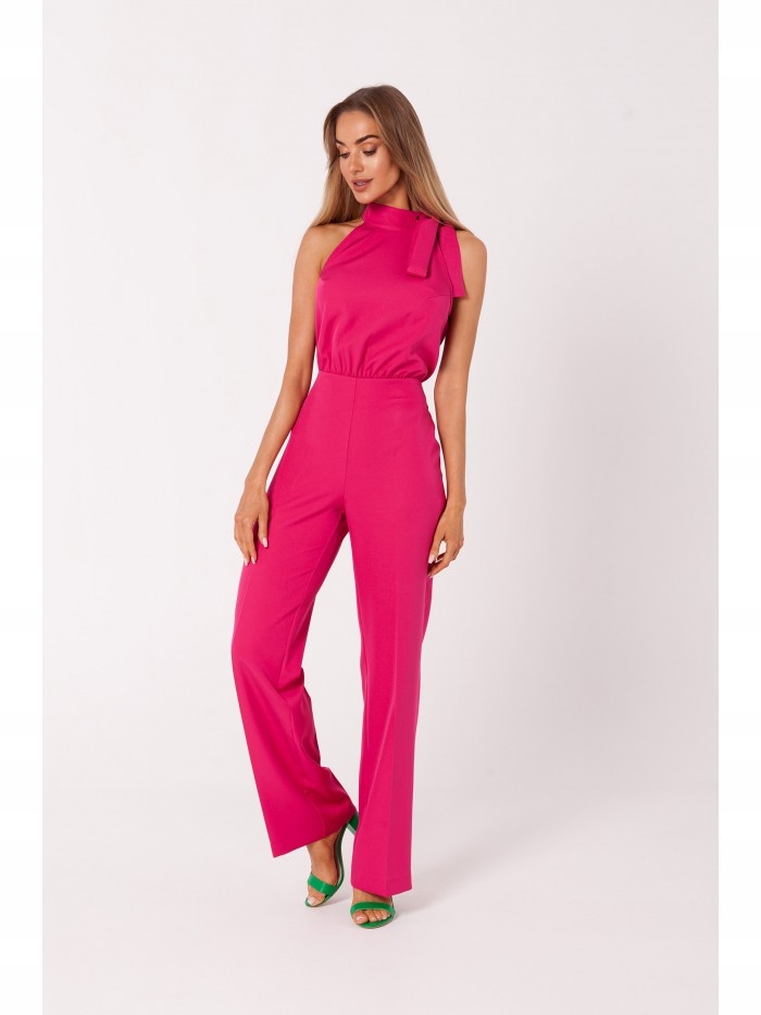 Элегантный комбинезон - брюки с вырезом на затволе и впечатляющим связыванием вокруг шеи.