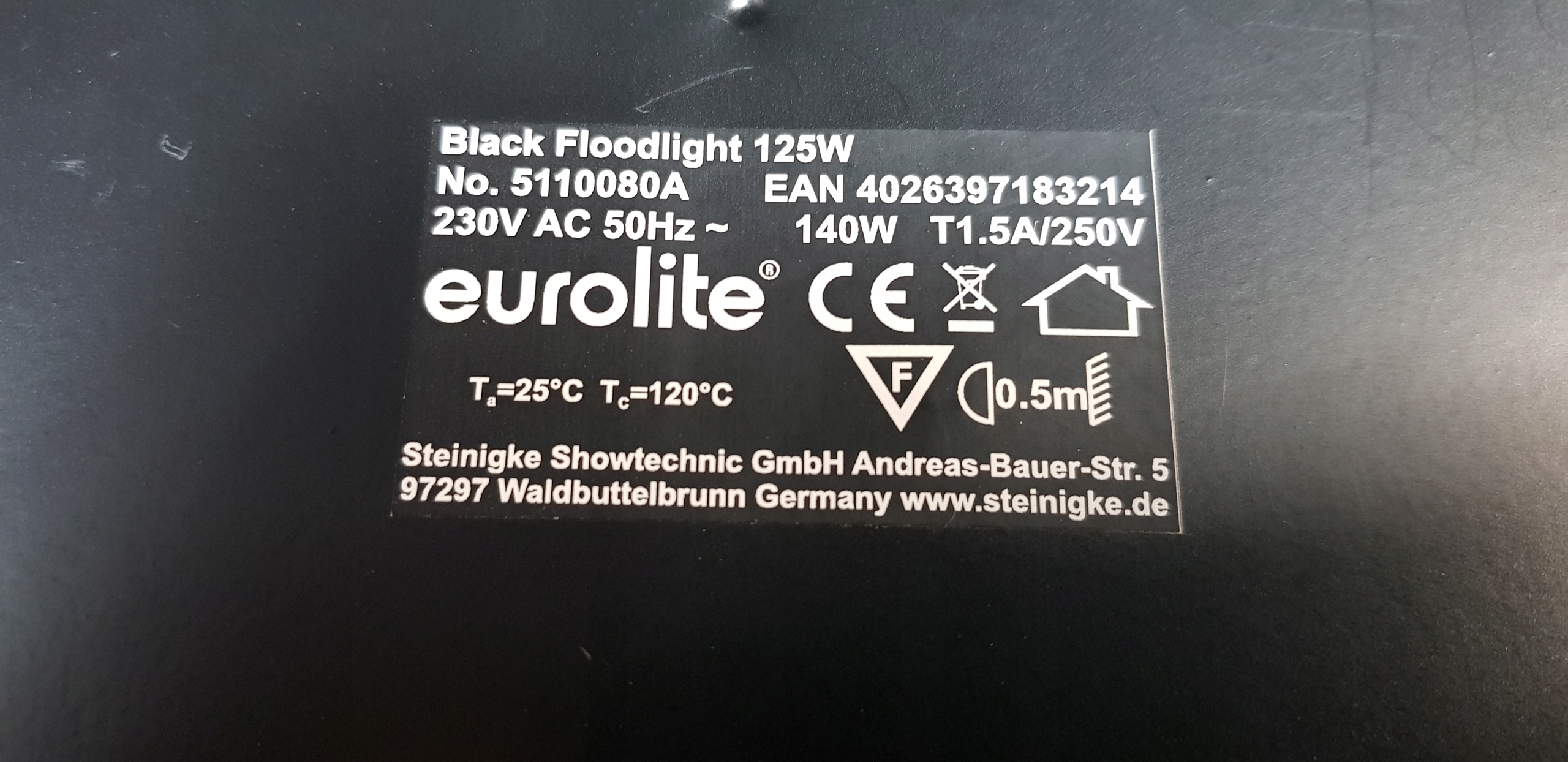 Eurolite ЧЕРНЫЙ ПРОЖЕКТОР 125Вт, УФ лампа