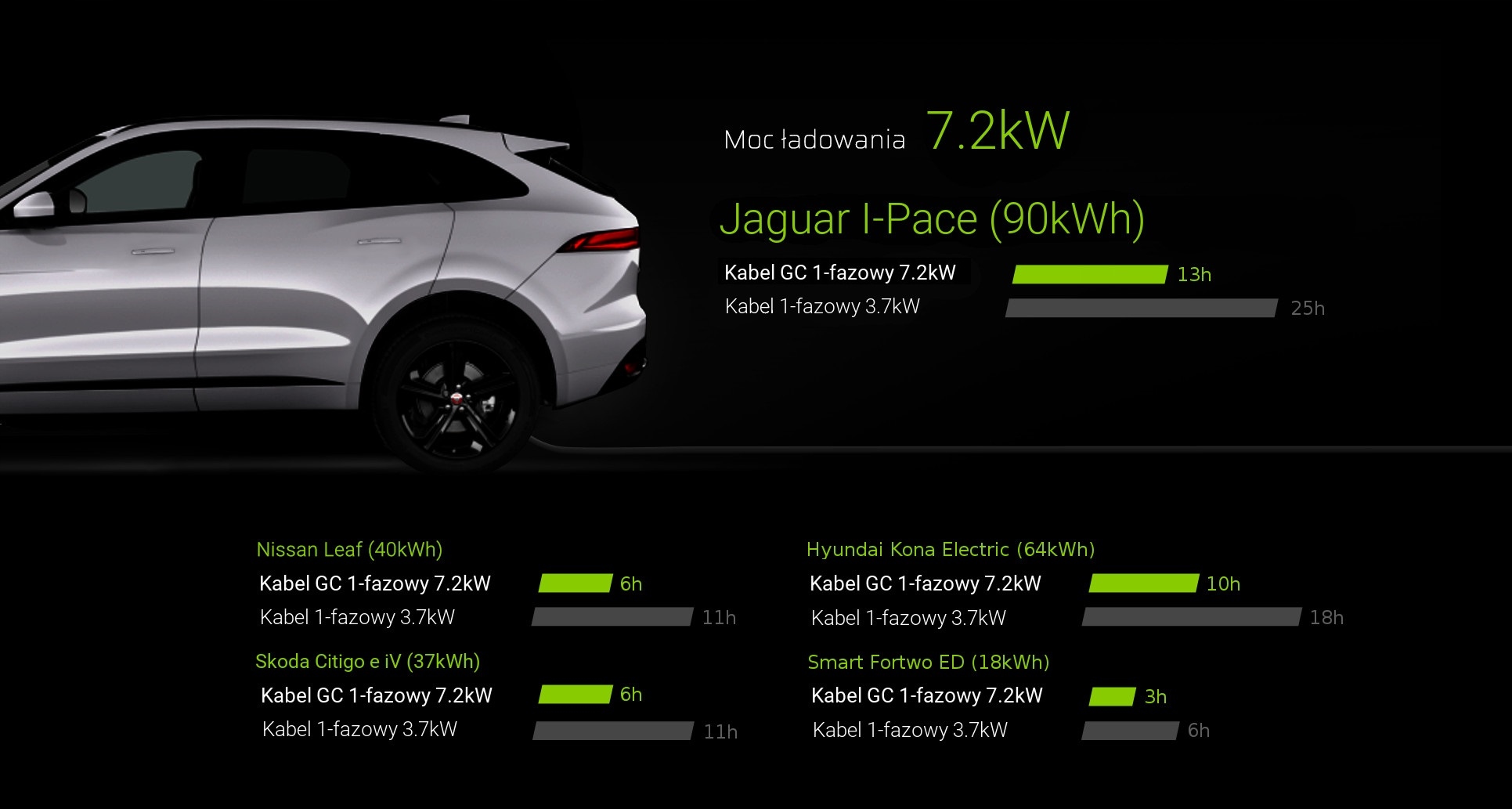 Благодаря кабелю GC типа 2 7,2 кВт, электромобильность - это не только способ путешествия, но и экономия времени