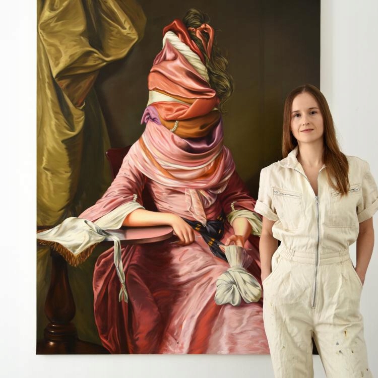 Эва Юшкевич (род. 1984) Польская художница, одна из самых выдающихся современных художниц своего поколения. Выпускница Академии изящных искусств в Гданьске (диплом мастерской проф. Мацея Свешевского) и докторантуры Академии изящных искусств в Кракове. Живет и работает в Варшаве. В 2014 году она была включена в престижное издание «100 художников завтрашнего дня» (Thames & Hudson), а ее работы быстро получили международное признание. Художника представляет галерея Гагосяна. Ее работы достигают рекордных цен на аукционах Sotheby’s и Christie’s — в 2022 году картина «Портрет дамы (по мотивам Луи Леопольда Бойи)» была продана за $1,56 млн. Работы Юшкевича сосредоточены на сюрреалистических реинтерпретациях исторических портретов. Художница заменяет лица героинь фантастическими формами из волос, тканей, цветов и органических элементов, вступая в критический диалог с традицией европейской живописи и с культурными нарративами о женской идентичности.