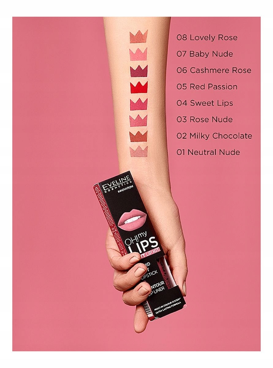 Набор для макияжа губ Eveline OH my Lips Матовая жидкая помада + карандаш для губ Lovely Rose (08)