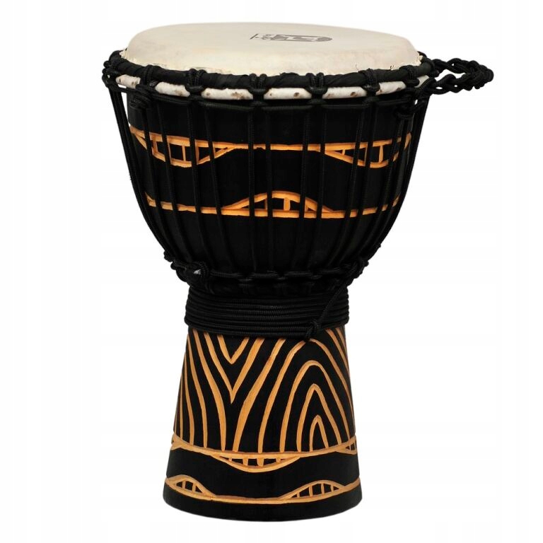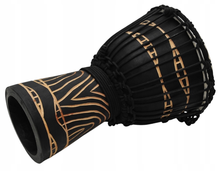 Корпус выполнен из цельного куска красного дерева, мембрана – из качественной натуральной кожи. Джембе Очень оригинальный, красочно украшенный красивой этнической резьбой. Оснащен удобной ручкой. Это инструмент с очень широкими звуковыми возможностями в зависимости от техники игры. Это делает его отличным ритм-инструментом, который окрашивает звучание всей группы. Высота 30 см, диаметр диафрагмы 15 см.